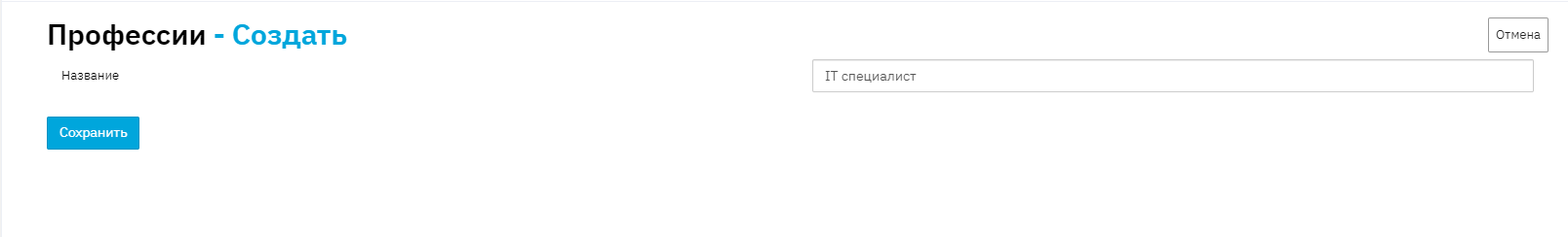 To add a new profession, click the "Add" link, fill in the profession name, and click the "Save" button to save the new entry: