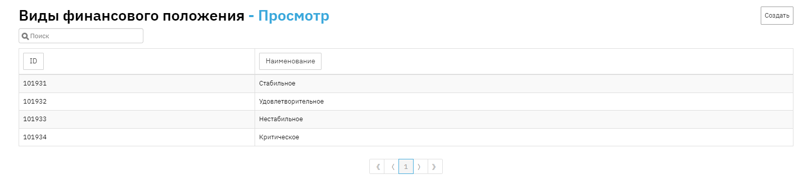 2) Types of financial position – a directory that reflects types of financial and material position of the client, which are used when creating a new loan application.