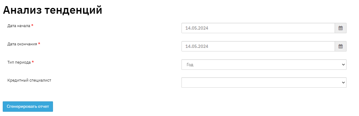 The report allows you to observe the dynamics of portfolio changes in a given mode: weekly, monthly, quarterly, yearly. Indicators: average portfolio amounts in the period, number of clients, loans, growth, decline, ratio of indicators. In the report interface, you fill in the required period, you can use a filter to select a specific loan officer, and also specify the division into sub-periods: week, month, quarter, year, period.