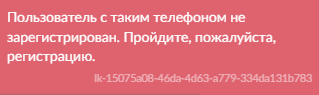 User authorization in the Personal Account (hereinafter — PA) is possible by phone number. When an unregistered user attempts to log in, the following message is displayed: