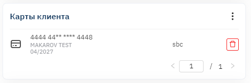 Виджет показывает привязанные карты клиента и в этом виджете сотрудник может привязать карту клиента.