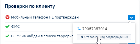 Далее необходимо сотруднику ввести код подтверждения, который продиктует клиент и нажать кнопку "Верифицировать".