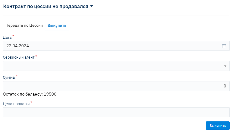 Таким же образом вы можете выкупить Контракт, тогда по Контракту появится признак "Выкуплен":