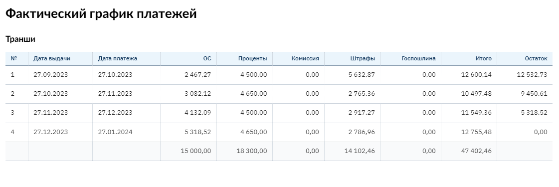 Расчет погашения – здесь можно посмотреть остаточную сумму для погашения.