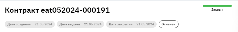 После запуска процесса контракт будет закрыт со статусом "отменен".