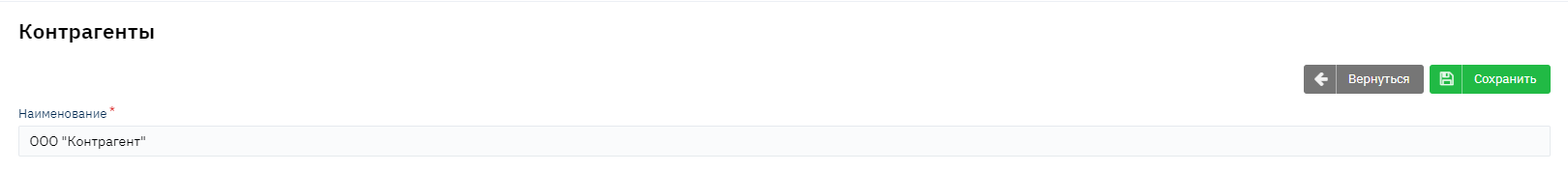 Заполните название контрагента и нажмите "Сохранить".