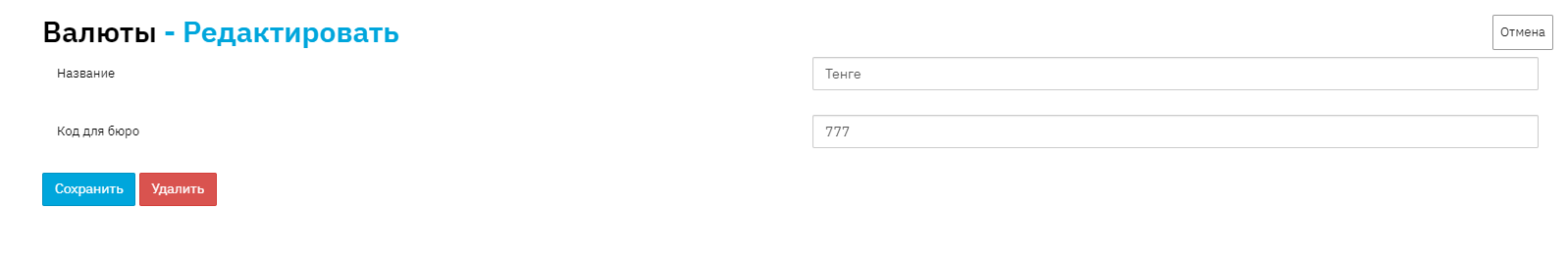 Вы можете легко отредактировать ранее заведенную Валюту просто нажав на строчку, внести измененения, сохранить или даже удалить.