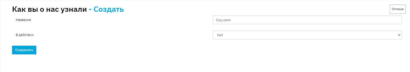 Далее заполните наименование источника информации, чтобы сохранить новый элемент нажмите кнопку «Сохранить».