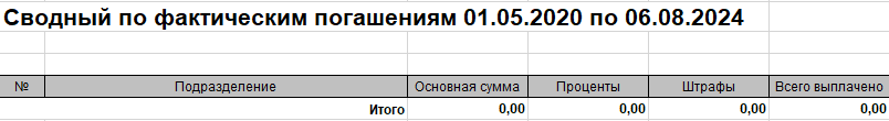 Суммарные - Сводный по фактическим погашениям