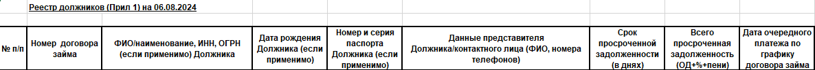 - Данные представителя Должника/контактного лица (ФИО, номера телефонов)