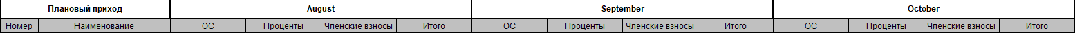 В таблице «Плановый приход» выходят расчетные данные по приходу ОС, процентов (сборов если они есть) активных контрактов за отчетный период.